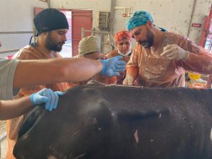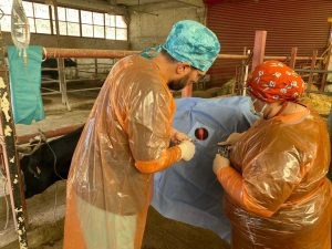 Çiftlik Müdür Yardımcımız Dr. Mehmet Ali ERFİDAN’ ın hasta takibini yaptığı Yerli kara ineğin, Cerrahi Anabilim Dalı Öğretim Üyesi Doç. Dr. Mustafa Volkan YAPRAKÇI ve lisans üstü öğrencilerinden oluşan ekip tarafından Rumenotomi ve laparotomi operasyonu başarıyla yapıldı.